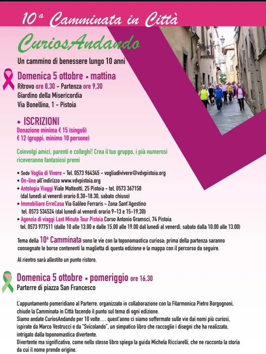 Quest’anno cammineremo tra le vie di Pistoia dalla toponomastica più curiosa, con maglietta dell’edizione e mappa in omaggio per tutti i partecipanti.