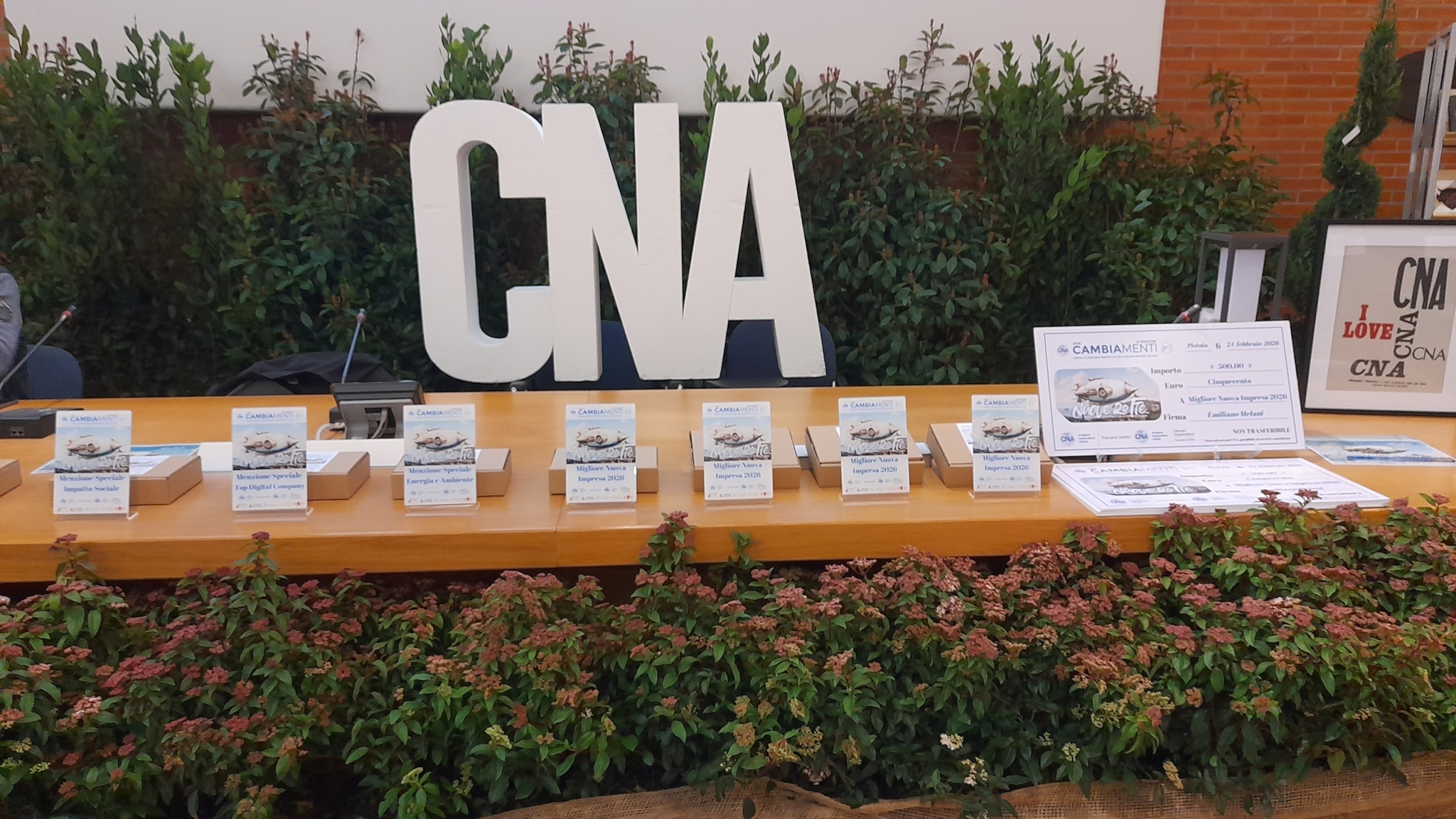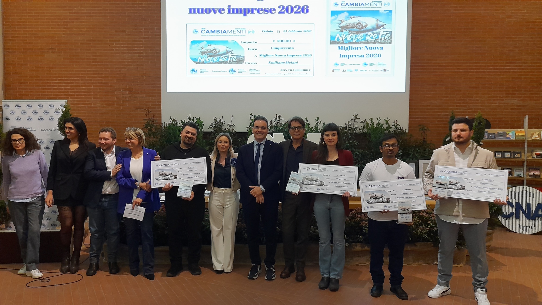 L’evento che ha visto anche gli interventi del vicepresidente nazionale CNA Claudio Bettazzi e di Elena Calabria in rappresentanza della CCIAA Pistoia-Prato, è stato diretto da Giada Lenzi, coordinatrice del Gruppo Giovani Imprenditori Toscana Centro, patrocinato da Pistoia Capitale del Libro 2026 e Pistoia Essere Impresa, il cui progetto è stato presentato durante il pomeriggio da Giacomo Buonomini, Responsabile Politiche Formative di CNA Toscana Centro. Sono stati graditi ospiti Rudy e Roberta Necciari, titolari della “Stamperia Benedetti” di Pescia nonché socio di CNA Toscana Centro: fondata nel 1485, è la più antica della Toscana ed una delle prime nate in Europa. Il loro legame con questo evento è dovuto al fatto che la finale del “Premio Cambiamenti” è stata inserita nel cartellone di eventi di “Pistoia Capitale Italiana del libro” 2026.