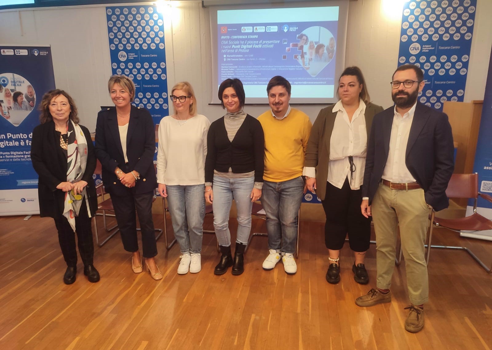 All’inaugurazione dei due nuovi Pdf che si è tenuta oggi nella sede di Pistoia della CNA Toscana Centro hanno partecipato la presidente di CNA Sociale, Paola Calandra, il direttore di CNA Toscana Centro Cinzia Grassi e, per le istituzioni, Riccardo Trallori, capo segreteria dell’assessore regionale Stefano Ciuoffo alle Infrastrutture Digitali e all’Innovazione , Gianluca Vannuccini, direttore del settore Sistemi informativi, infrastrutture tecnologiche e innovazione della Regione Toscana.