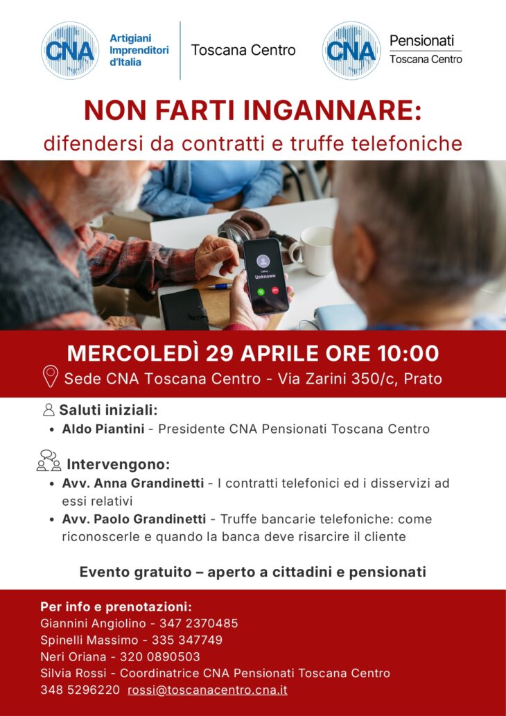 • Silvia Rossi (Coordinatrice CNA Pensionati Toscana Centro) – 348 5296220 – rossi@toscanacentro.cna.it
