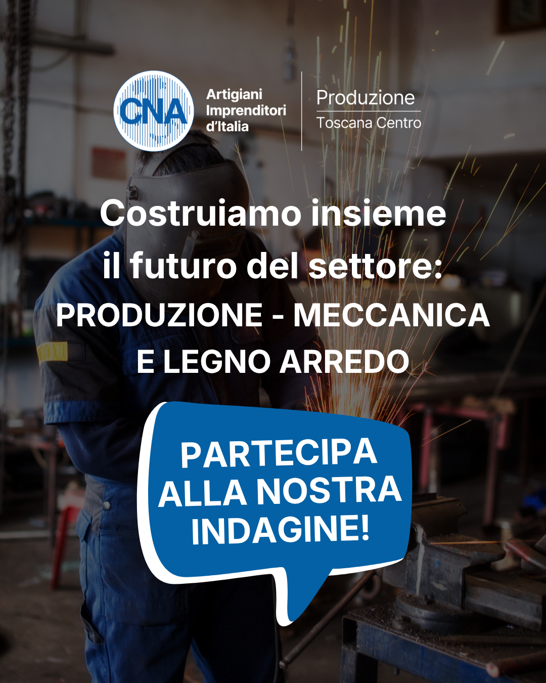 CNA Toscana Centro promuove una nuova indagine rivolta alle imprese associate operanti nei settori della meccanica e del legno-arredo con l’obiettivo di raccogliere informazioni aggiornate e concrete sulle caratteristiche, i fabbisogni e le principali sfide che il comparto sta affrontando.